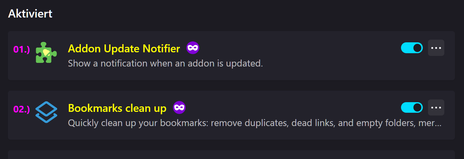 // @description Bei about:addons beim Titel der Erweiterung Versionsinfo und