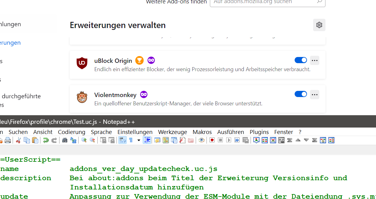 Und, wie von Horstmann schon geschrieben, in Zeile 56 ChromeUtils.import in ChromeUtils.importESModule ändern. Allerdings bin ich mir da nicht klar, weil mir kein Modul bekannt ist, das about-addons-verbose-ucjs oder ähnlich heißt. Es ist irgendeine andere Ressource.