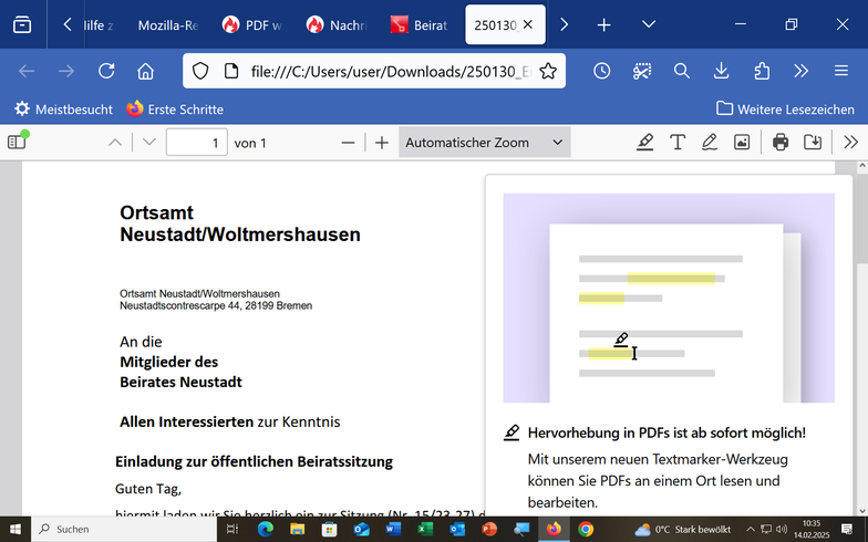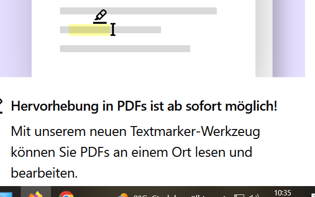 Seit einigen Tagen erscheint jedesmal, wenn ich ein PDF online öffne, auf der rechten Seite ein nicht schliessbares Fenster im Vordergrund, das auf die Bearbeitungsmöglichkeit von PDFs hinweist. Das gleiche Poblem taucht ebenso bei meinem Bruder auf, wenn er firefox benutzt. Bei anderen Browsern tritt es nicht auf. Wie kann ich dieses Fenster schliessen, es reagiert nicht. Ich hätte gerne ein Bildschirmfoto gemacht, auf dem dieses Fenster zu sehen ist, aber das ist so sehr im Vordergrund, dass es sich nicht auf den Fotobereich bringen lässt!