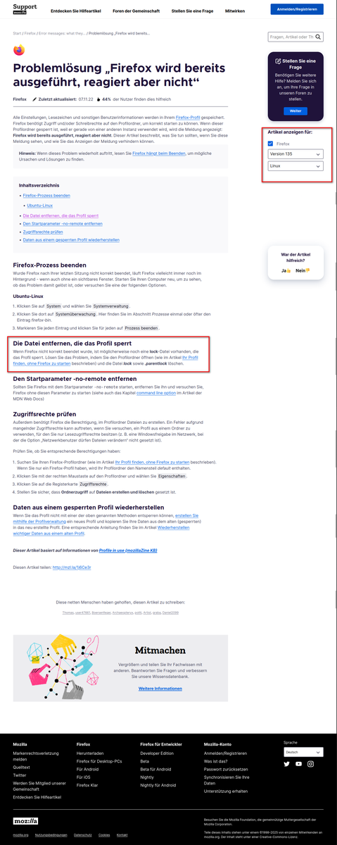 Firefox startet nach Update auf 135.0 nicht immer in Linux Mint