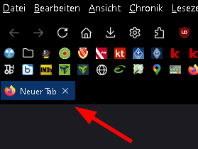 der FF ist bei mir so eingestellt, dass nach dem Schliessen des letzten Tabs, das Browserfenster offen bleibt. Es erscheint halt dann der Button "Neuer Tab". Das brauche ich nicht und das kann weg. Wenn ich nun wüsste, wie sich dieses "Element" nennt, könnte man das ev. mit