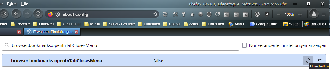 ich habe Firefox neu installiert und habe nun das Problem, dass beim Öffnen von einem Lesezeichen mit STRG in einem Dropdown, das Dropdown geschlossen wird.