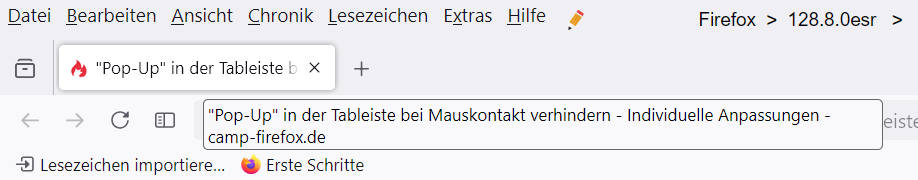 Wie ebenfalls am Screenshot zu sehen, erscheint seit einiger Zeit (keine Ahnung mehr seit wann genau) dieses "Pop-Up", wenn ich mit dem Mauszeiger einen Tab berühre.