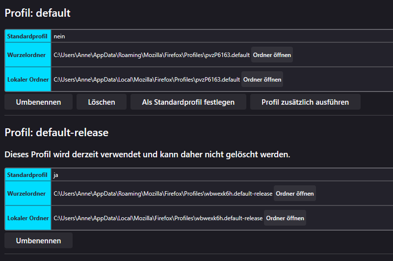 Aber alles ist weg... keine Tabs mehr, keine Erweiterungen, Chronik, Passwörter, alle Einstellungen weg, etc. Alles weg, als ob ich das erste mal frisch Firefox installiert hätte.