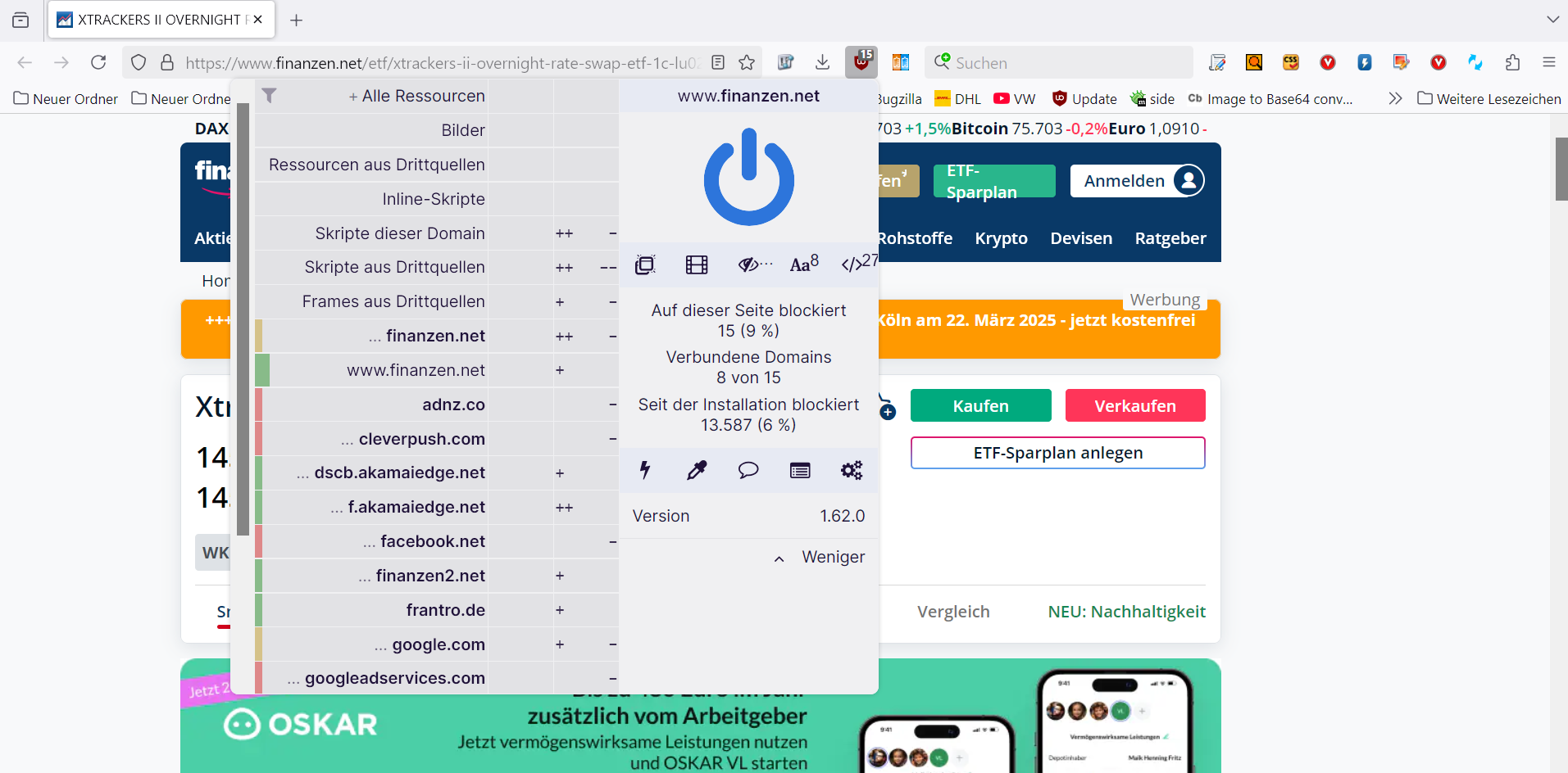 In den letzten Tagen nerven mich hartnäckige Werbelayer auf der Webseite Finanzen.net