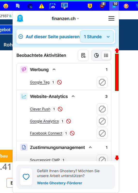 Ich habe diverse Versuche mit der Pipette gemacht, für eine Zeit sind die Werbungen verschwunden, wenn ich nach einer gewissen Zeit die Seite aktualisiere, erscheint diese oder andere Einblendungen und der Speicher läuft voll, Firefox friert ein, manchmal wird er dann wieder benutzbar, manchmal muss ich ihn aber via Taskmanager "abschießen". Da ich ständig 5 verschiedene Seiten mit der Adresse offen habe, ist das Arbeiten so ziemlich schwierig. Im Vivaldi ist das Problem ebenso existent, auch mit uBlockOrigin und identischer Filterliste, allerdings friert der Browser nicht ein.