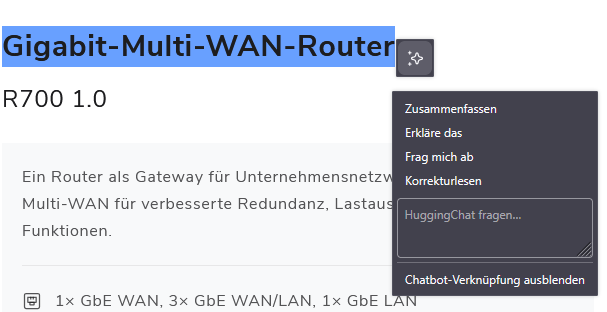 ImTranslator womit man Text, den man markiert hat, übersetzen kann und ChatGPT, welches in Firefox integriert ist.