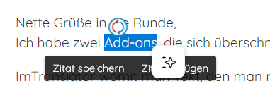 Wenn ich jetzt einen Text markiere, dann erscheint für jedes der Add-ons ein kleines Zeichen, um es zu verwenden. Leider ist es dann aber so, dass das Zeichen von ImTranslator komplett vom Zeichen des ChatGPT überdeckt wird!