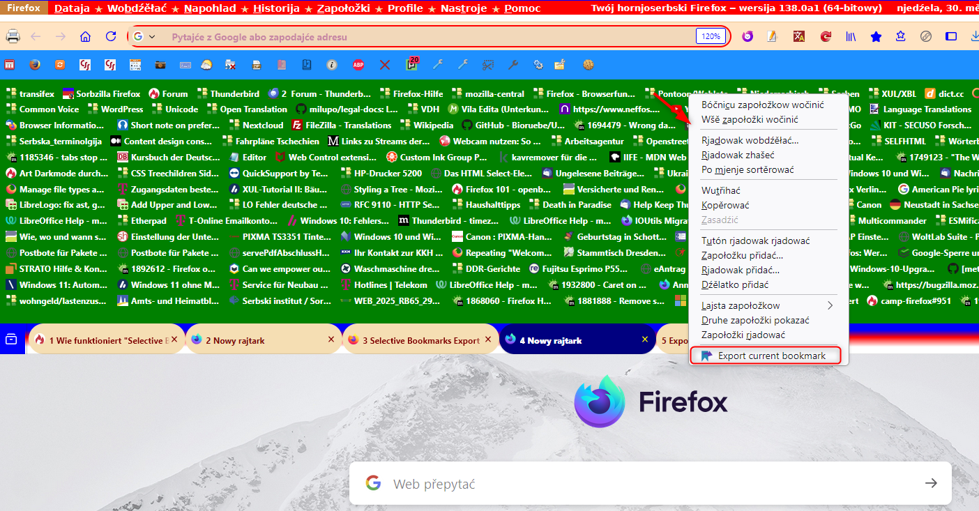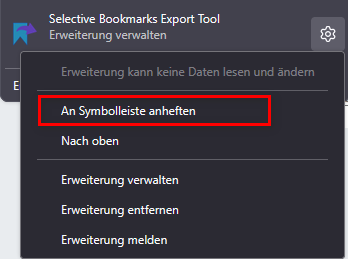 Jetzt nach Installation des "Selective Bookmarks Export Tool" kommt diese Anzeige nicht mehr und ich frage mich, wie ich nun einen gewünschten Ordner exportieren kann.