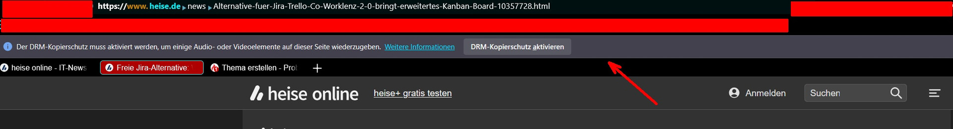 Seit Zeit x (k.A. ob schon Wochen, Monate, Jahre) bekomme ich bei (manchen?) Unterseiten eine temporäre zusätzliche Leiste oben angezeigt die mich freundlich darauf hinweist doch den Kopierschutz zu aktivieren. Sieht so aus:![]()