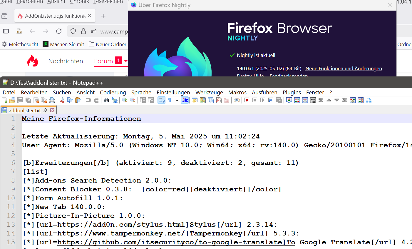 Vielen Dank nochmals und habe ich schon erledigt:userChrome.js/Firefox 138/AddOnLister.uc.js at master · Endor8/userChrome.jsSkripte für die Firefox-Erweiterung userChromeJS. Contribute to Endor8/userChrome.js development by creating an account on GitHub.github.comMira_Belle
