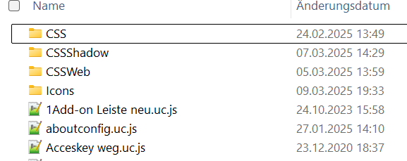 • 2002Andreas :da hatte ich dich dann nicht richtig verstanden. Ich habe deinen Vorschlag "Addonleiste" direkt übernommen, ohne daran zu denken, dass das Skript im Ordner hinter die beiden about:... rutscht. Dank deines neuen Tipps ist nun wirklich alles in Ordnung.