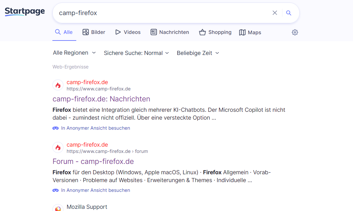 • auf Startpage auch nur einen einzigen Link dieser Art zu erhalten