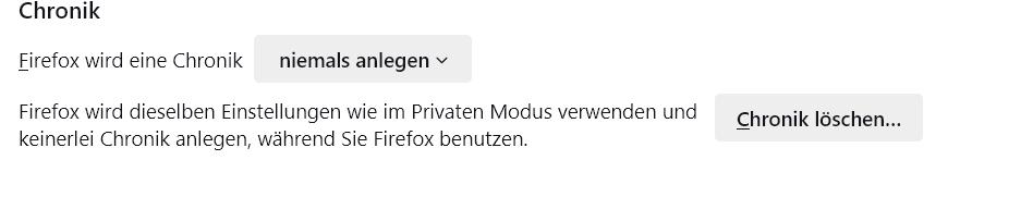 • Dieser Text wird angezeigt, wenn du in den Einstellungen "Firefox wird eine Chronik -> niemals anlegen" ausgewählt hast.