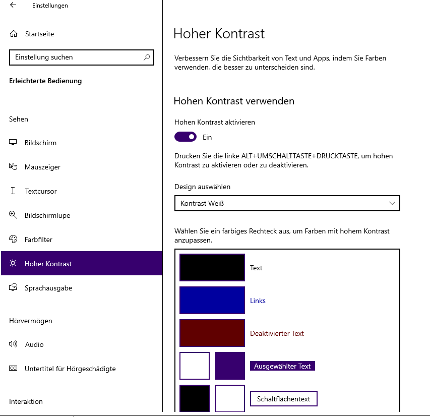 • Edge kann das von sich aus selbst nicht. Es gibt wohl ein Flag edge://flags/#forced-colors, aber das ist nur Vorbereitung. Letztlich braucht es eine kontrastreiche Einstellung unter Windows - an dem sich allerdings auch Firefox orientiert. Deswegen verstehe ich u.a den Seitenhieb in #11 am Windows 11 nicht. Windows 11 ist grad nicht an, aber Windows 10 ist ähnlich strukturiert: