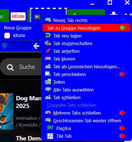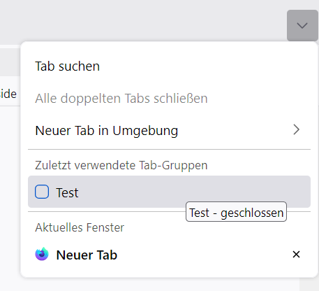 Wäre es möglich, per Rechtsklick auf den Tab "Tab zu Gruppe hinzufügen" auch dann angezeigt zu bekommen, wenn die Gruppe nicht geöffnet ist?