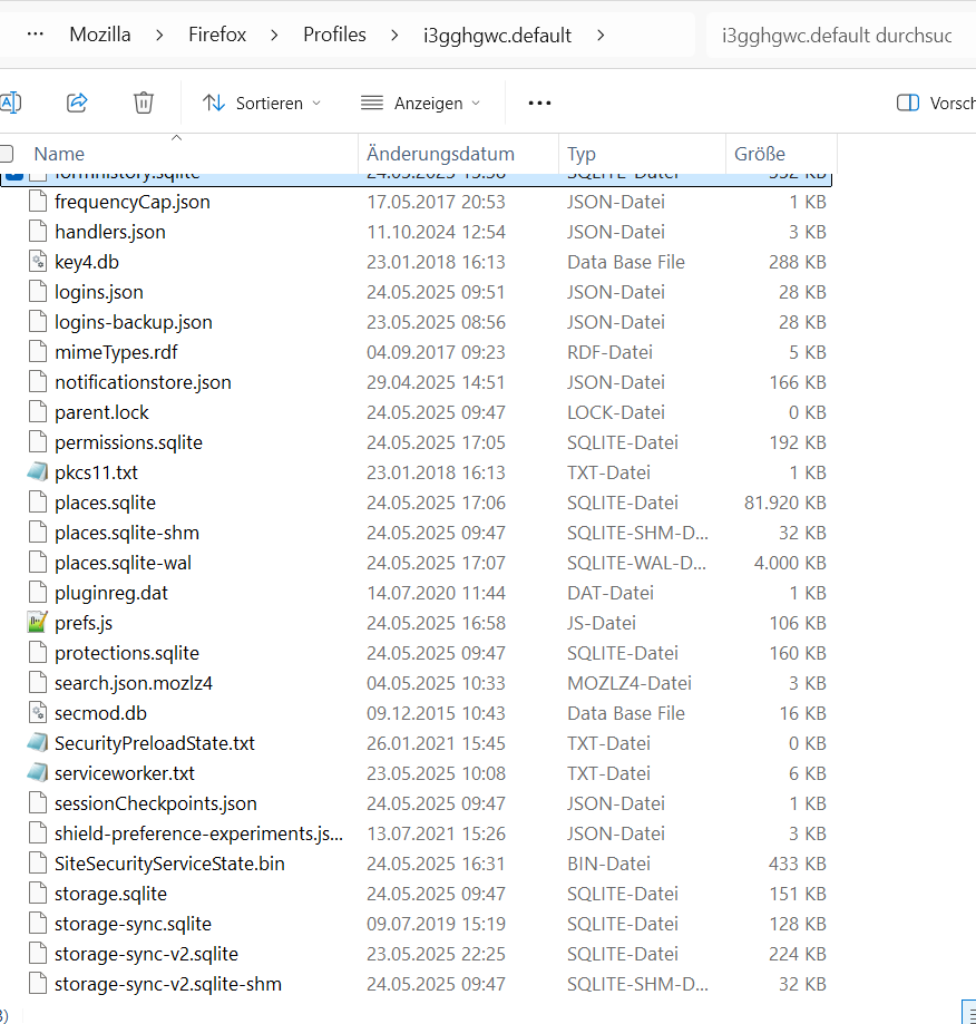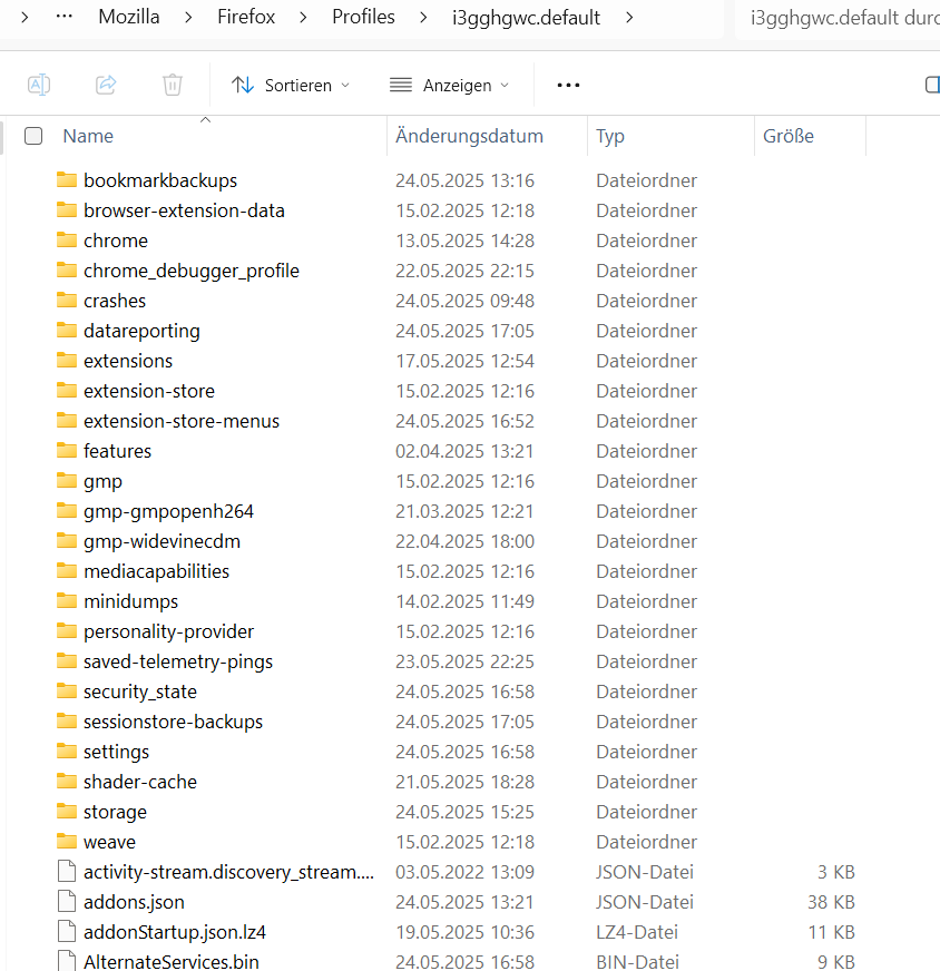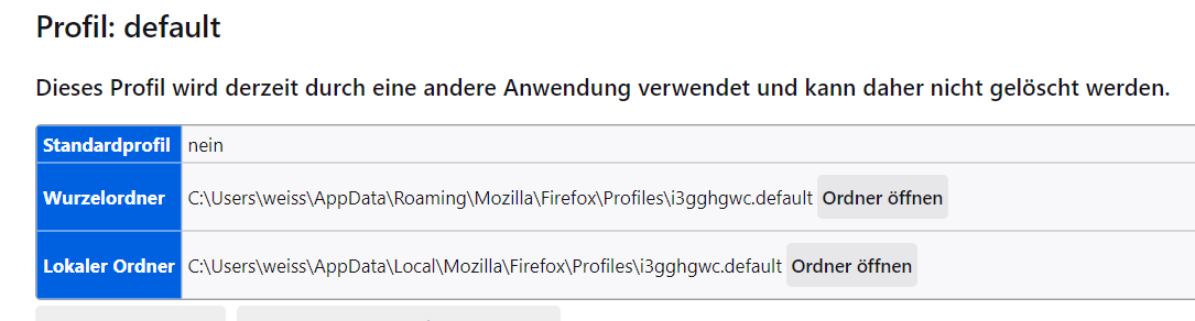 oder auch unter: Hilfe..Weitere Informationen zur Fehlerbehebung..Profilordner.. Ordner öffnen