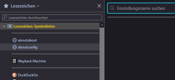 Ich hab in der Lesezeichen-Symbolleiste u.A. ein Lesezeichen für [about:config] und [abot:about].