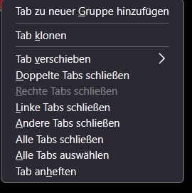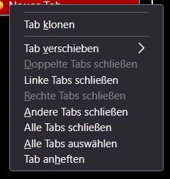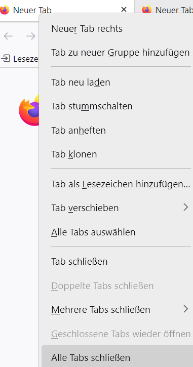 • Der zweite Teil in diesem Skript hat bisher per Kontextmenü "Alle Tabs schließen" ausgelöst. Tut es aber nun auch nicht mehr: