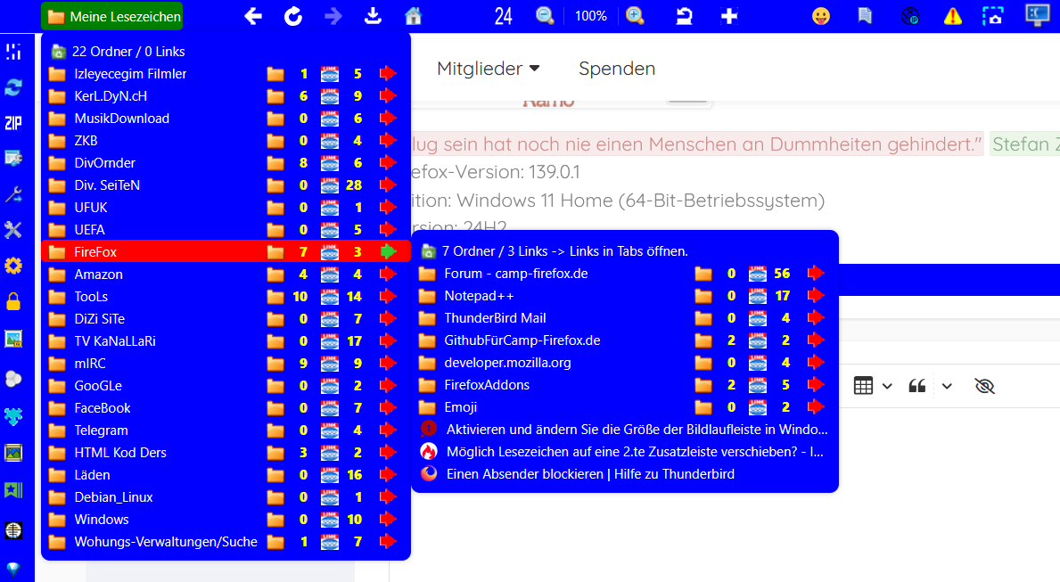 //Fügt in den Lesezeichen Ordner ganz oben die Anzahl von Links und Unterordner hinzu.