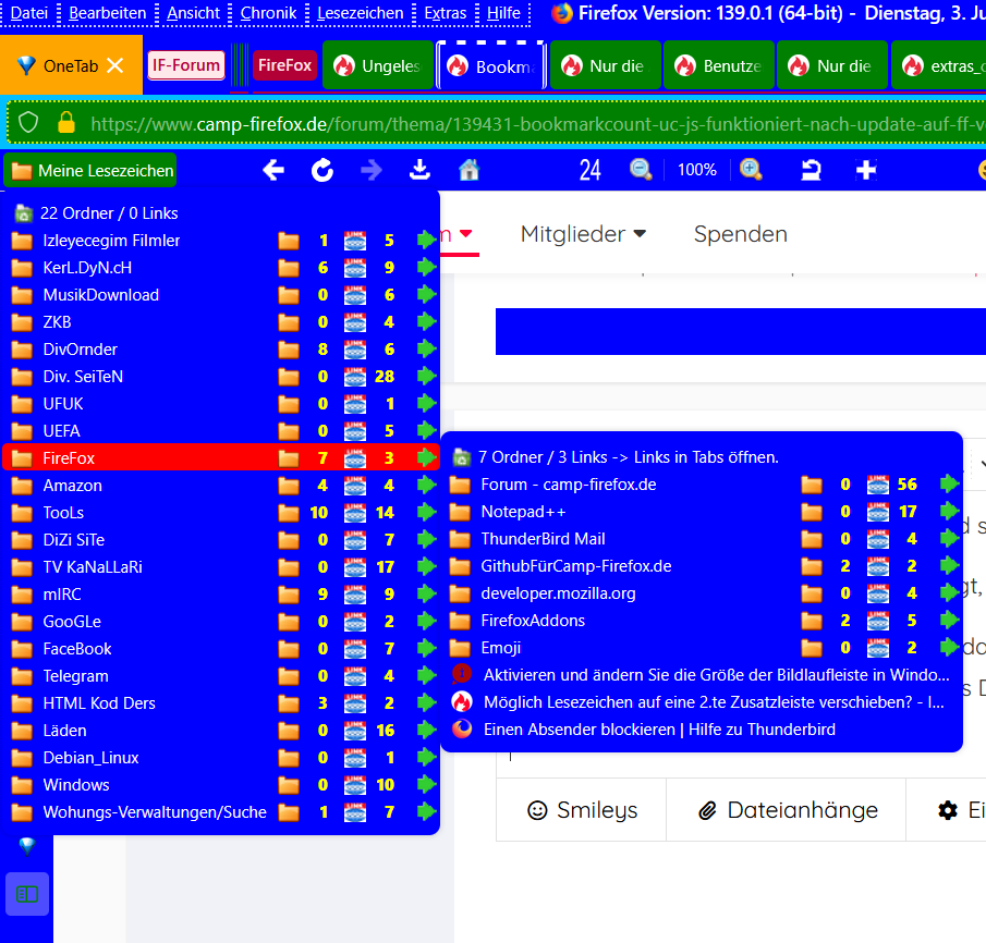 nachdem auf version 139.0 updatet habe, funkt folgendes Script nicht mehr.