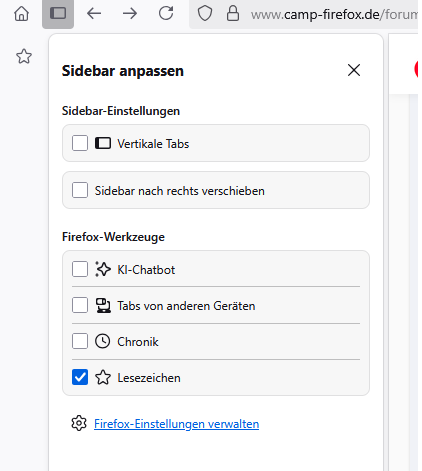 Firefox: Lesezeichen linke Seite dauerhaft anzeigen lassen
