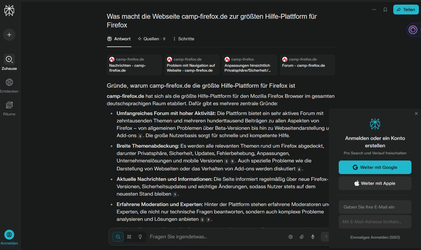 ZitatFirefox wird standardmäßig mit mehreren Suchmaschinen ausgeliefert. Mit Perplexity hat Mozilla die Standard-Auswahl auf den Wunsch seiner Nutzer hin um eine KI-basierte Suchmaschine erweitert.
