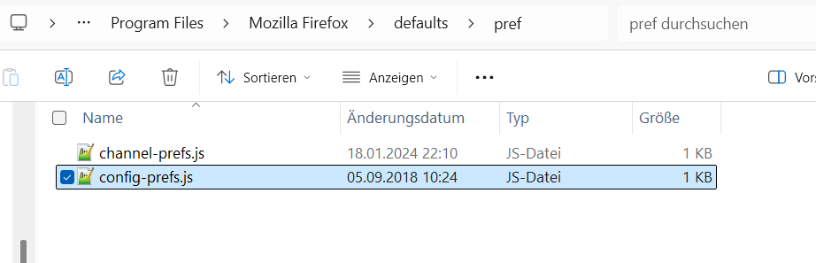 Allerdings habe ich die Unterverzeichnisse '\defaults\pref' nicht... ...und nun weiß ich nicht wohin mit der Datei config-prefs.js ![]()