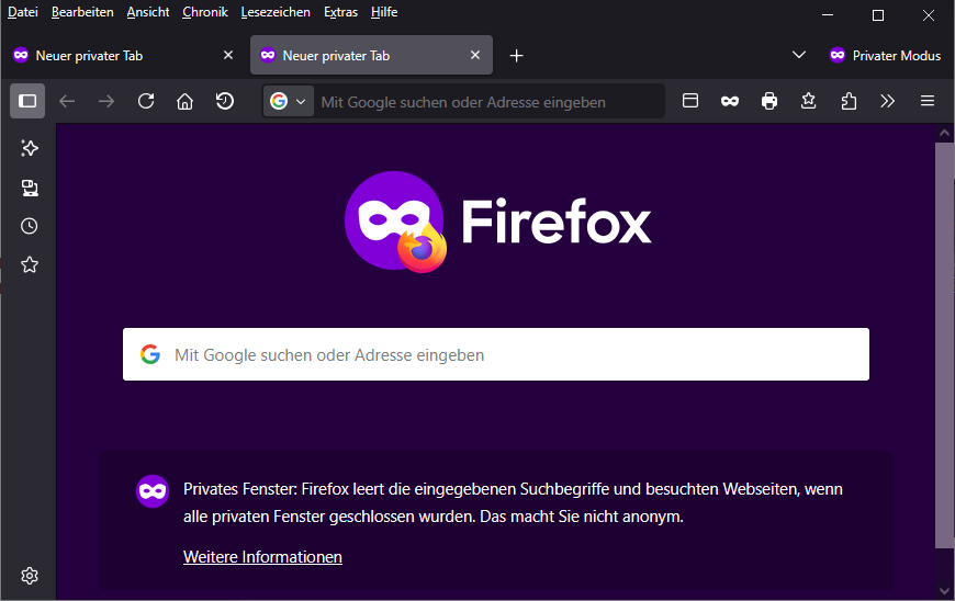 Wenn ich unter Windows wirklich garantiert ein privates Fenster haben möchte, bleibt mir nichts anderes übrig, als entweder