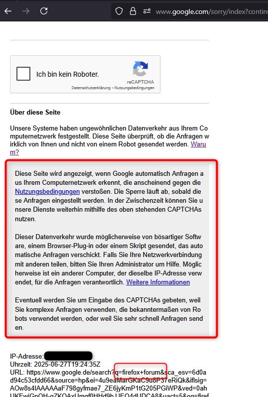 Ständig Captcha Abfrage bei Google Suche mit Firefox
