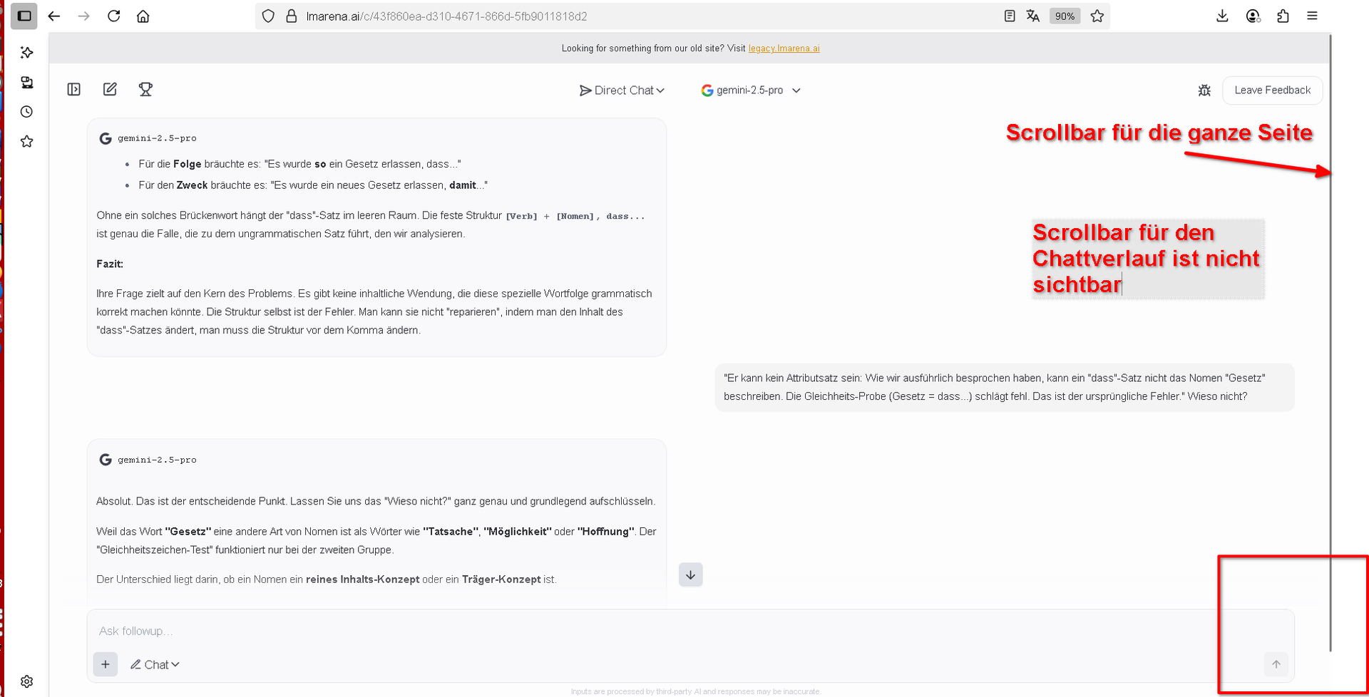 Diese Seite hat 2 Scrollbars. Die eine Scrollbar bezieht sich auf die gesamte Seite. Die kleinere nur auf den Inhalt des Chatfensters.