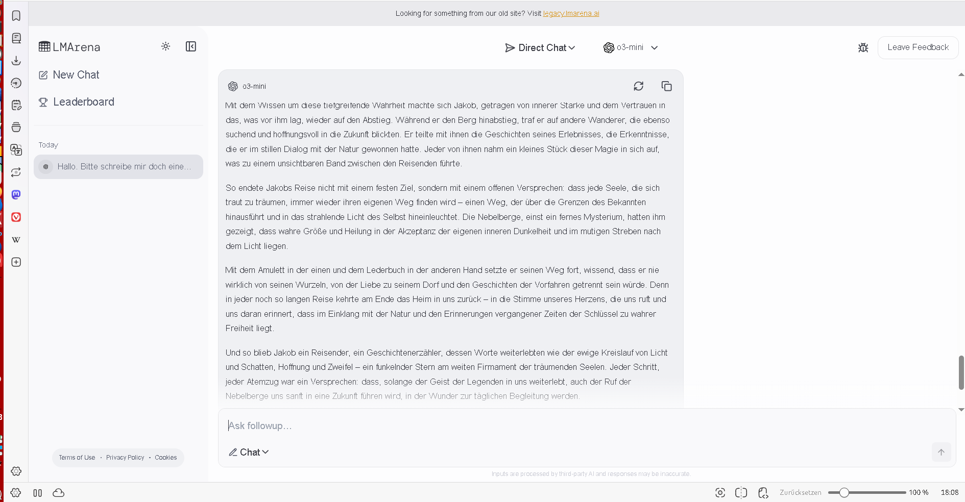 Edit: https://lmarena.ai/?mode=direct , und dann bitte eine Antwort generieren lassen.