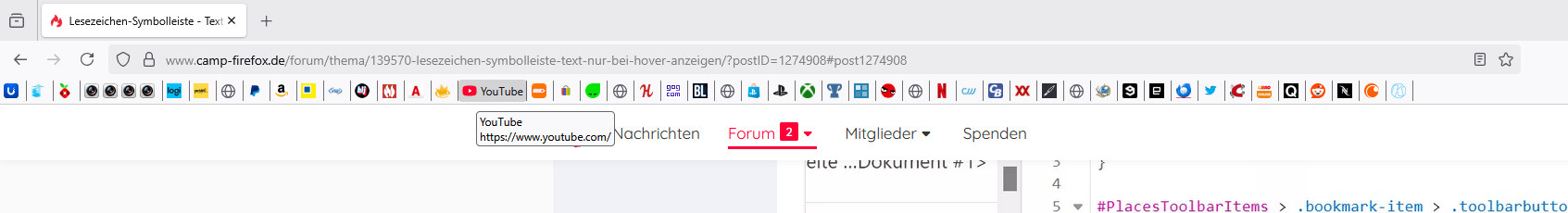 Lesezeichen-Symbolleiste - Text nur bei hover anzeigen