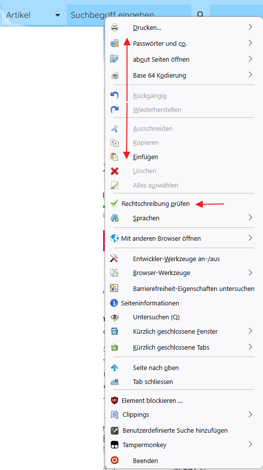 macht, im Kontextmenü die Rechtschreibprüfung aktiviert, dann mit