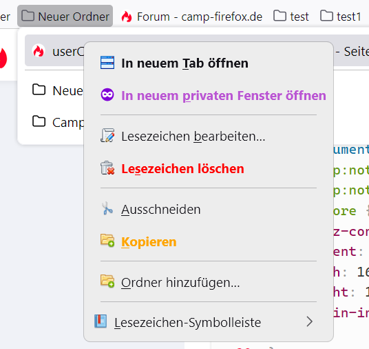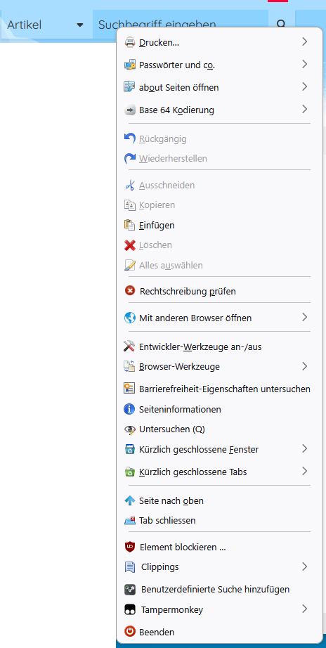 In Firefox 141 beta da sind fast überall die Abstände im Kontextmenü