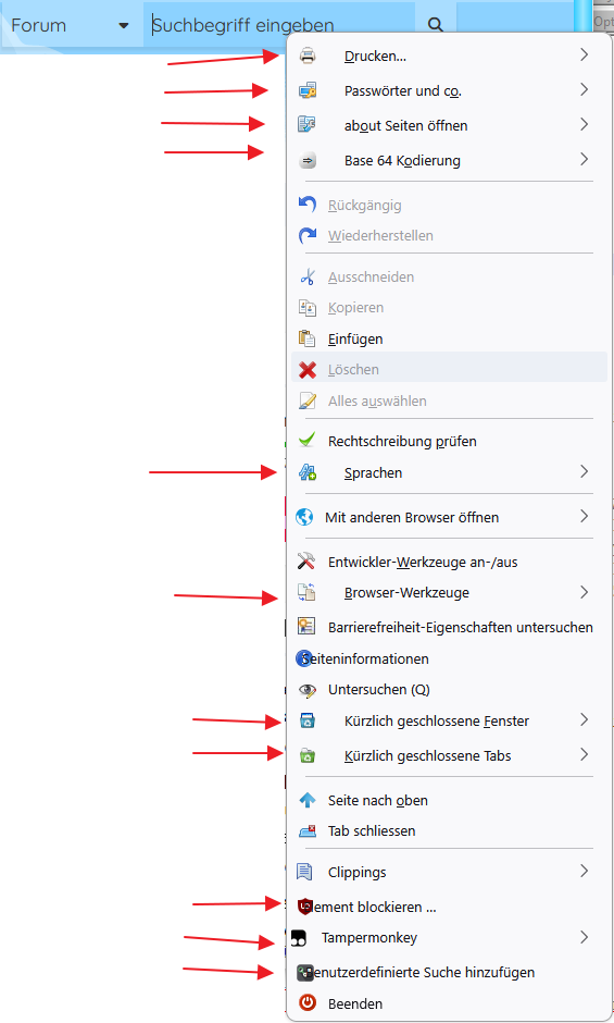 Rechtsklick das Menü noch mal öffnet dann sind die zwischen den Einträge