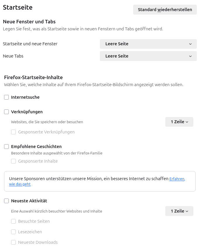 So zeigt z. B. die Startseite bei mir eine Leere Seite, weil ich es eben exakt so möchte.![]()