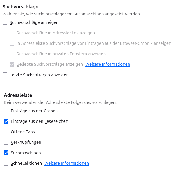 Ebenso habe ich bei der Suche etliche Funktionen deaktiviert.![]()