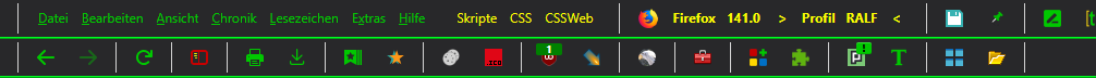 Habe eben auf Version 141.0 upgedatet. Jetzt fehlen die senkrechte Trennlinie (siehe Bild). Ich weiß nicht mehr wie ich die irgendwann mal dazu gemacht habe. Glaube über Symbolleiste anpassen da sind sie aber nicht mehr zu finden. Vielleicht hat ja jemand schon eine Lösung? Blauer Pfeil so soll es aussehen grüner Pfeil so ist es im Moment.