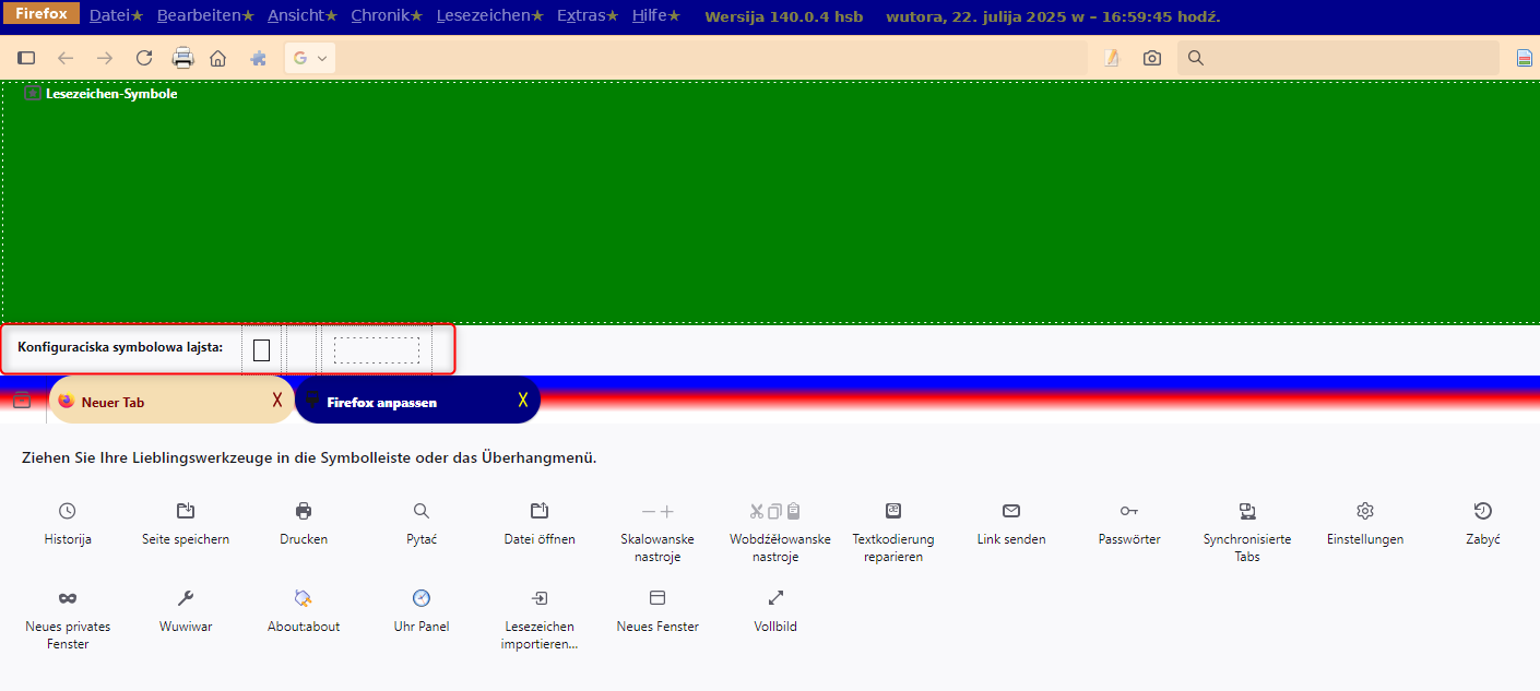 Habe eben auf Version 141.0 upgedatet. Jetzt fehlen die senkrechte Trennlinie (siehe Bild). Ich weiß nicht mehr wie ich die irgendwann mal dazu gemacht habe. Glaube über Symbolleiste anpassen da sind sie aber nicht mehr zu finden. Vielleicht hat ja jemand schon eine Lösung? Blauer Pfeil so soll es aussehen grüner Pfeil so ist es im Moment.