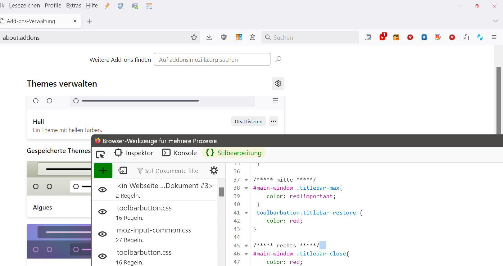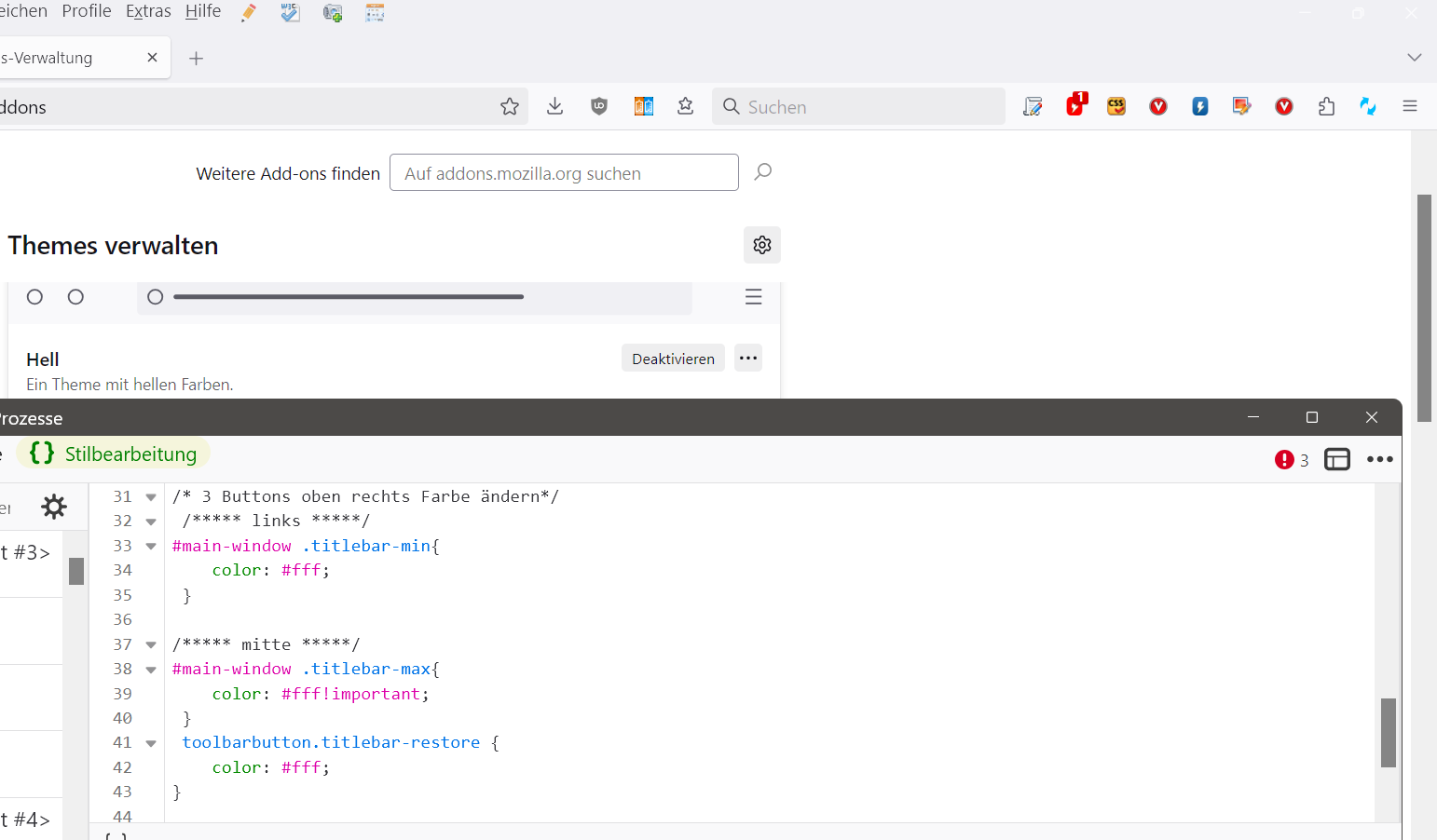 Doch seit dem neuesten Update funktionieren nur noch die :hover background Einstellungen. Die Symbole selbst bleiben schwarz, obwohl sie als weiß definiert wurden.