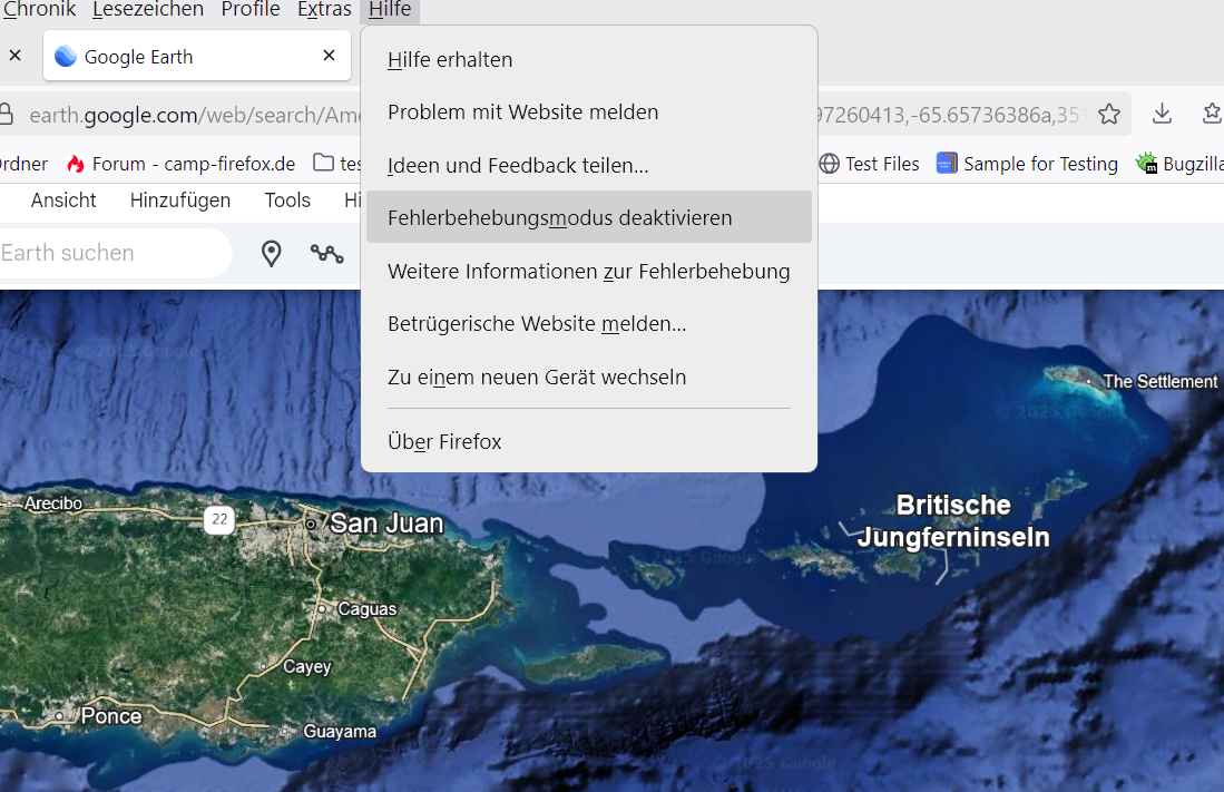 mangray: Du könntest auch mal den Weg aus dem anderen Thread versuchen: Dafür musst du in about:config den Schalter dom.postMessage.sharedArrayBuffer.bypassCOOP_COEP.insecure.enabled auf true und den User-Agent auf den von Chrome setzen. Global würde ich so etwas niemals tun. Aber bevor du dir eine Erweiterung installierst, um das nur für diese Seite zu ändern, kannst du das im Responsive Design Modus testen. Drücke Strg + Shift + M. Dann siehst du in der Leiste oben rechts deinen User-Agent. Klicke auf die Pfeile rechts davon und wähle „Chrome Desktop“. Lade Google Earth neu. Verbessert das für dich die Performance?
