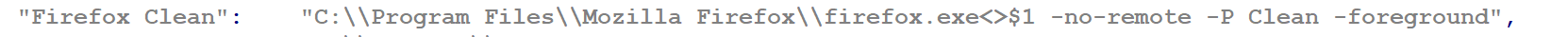 "Clean": "C:\\Program Files\\Mozilla Firefox\\firefox.exe<>$1 -no-remote -P Clean -foreground",