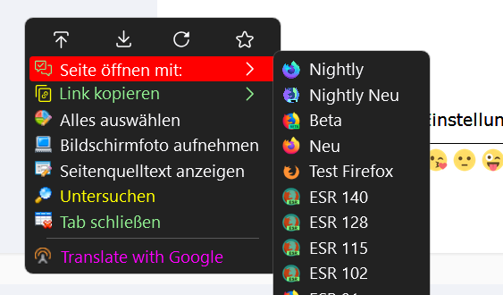 Und wer Links einfach in einem anderen Browser oder in einem anderen Firefoxprofil öffnen möchte:
