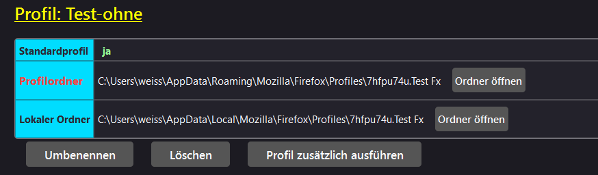 Ich habe das Profil mal unter about:profiles geändert: