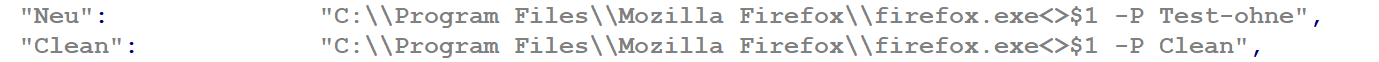 "Test ohne": "C:\\Program Files\\Mozilla Firefox\\firefox.exe<>$1 -no-remote -P Test ohne -foreground",
