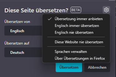 Es geht mir um die im Screenshot zu sehende Übersetzung (bzw. Lokalisierung) der Beschreibungen bei der Auswahl der Voreinstellung für automatische Übersetzungen von Websites.