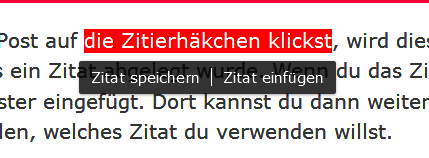 Der einzige Fall, in dem das nicht funktioniert, ist, wenn du mehrfach exakt den gleichen Abschnitt zitieren möchtest. Aber dann steht das Zitat ja immer noch im entsprechenden Dialog zur Verfügung, worüber es eingefügt werden kann.