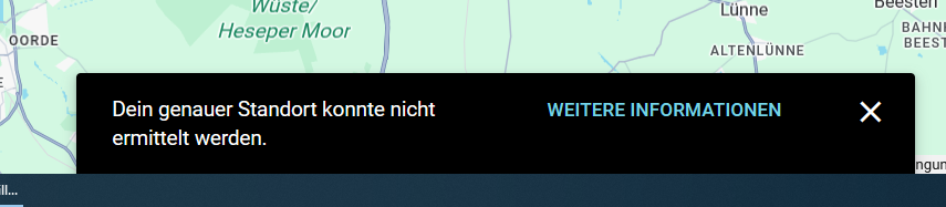 Es kommt eine Fehlermeldung der Webseite, daß der Standort nicht ermittelt werden konnte.