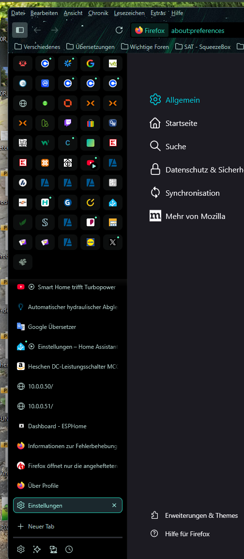 Das sind ja meine angehefteten Tabs. Ich mache mal einScreenshot wenn die Tableiste Senkrecht an der Seite ist, da siehst du unten auch die normal nicht angehefteten Tabs